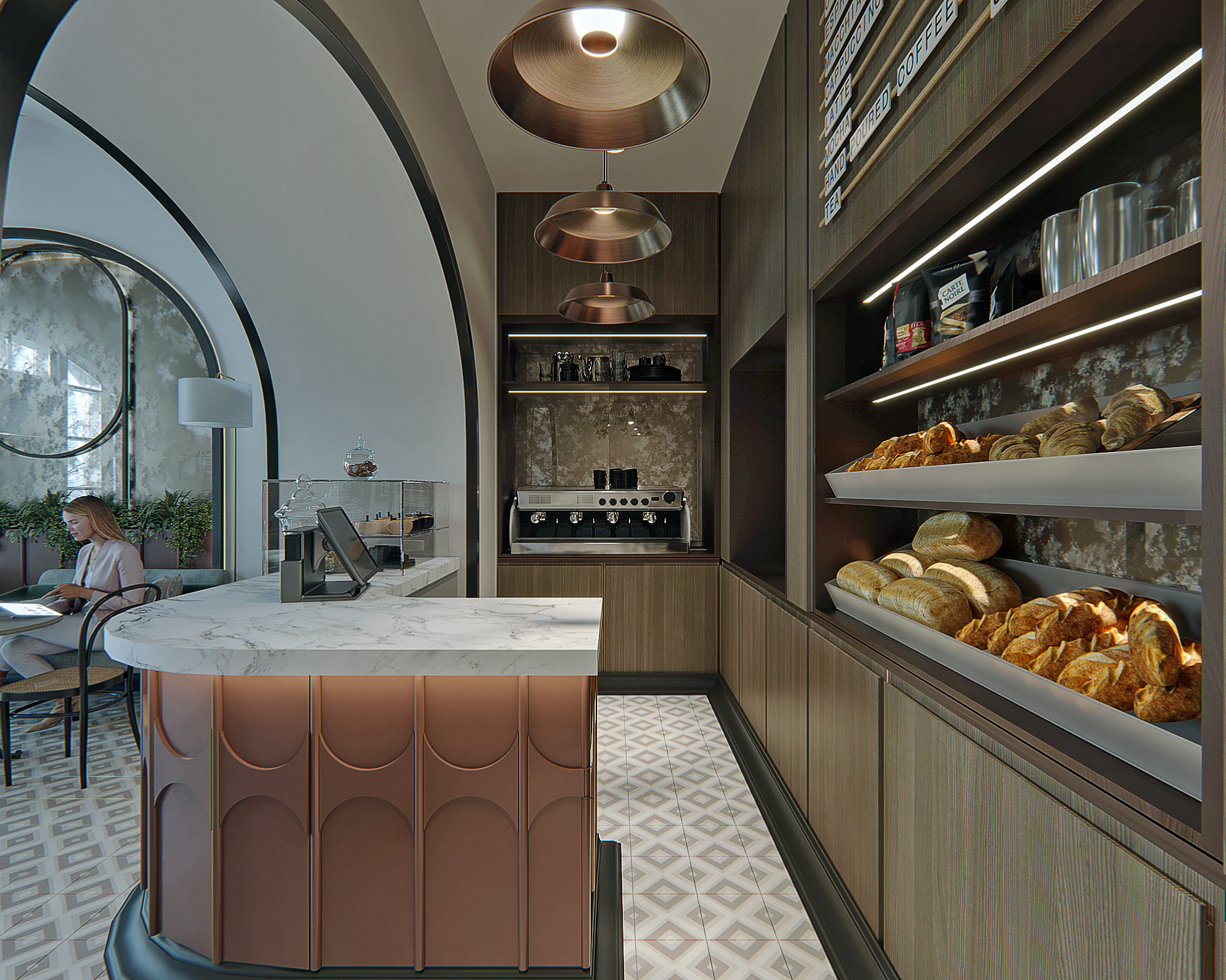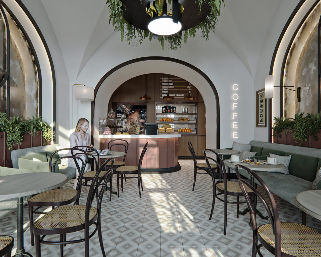 The small coffee shop design in the city center embodies charm and coziness amidst the urban hustle and bustle. With limited space, clever design choices maximize functionality and create an intimate atmosphere. Compact and efficient seating arrangements optimize the limited space while maintaining comfort.