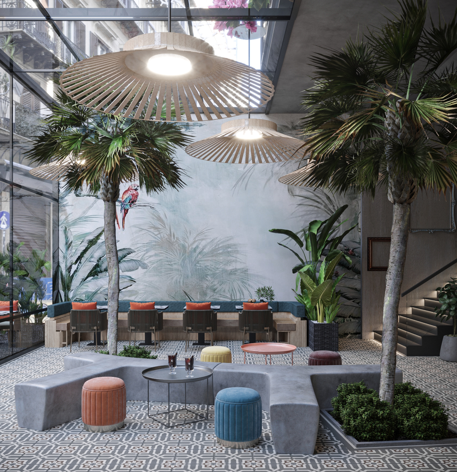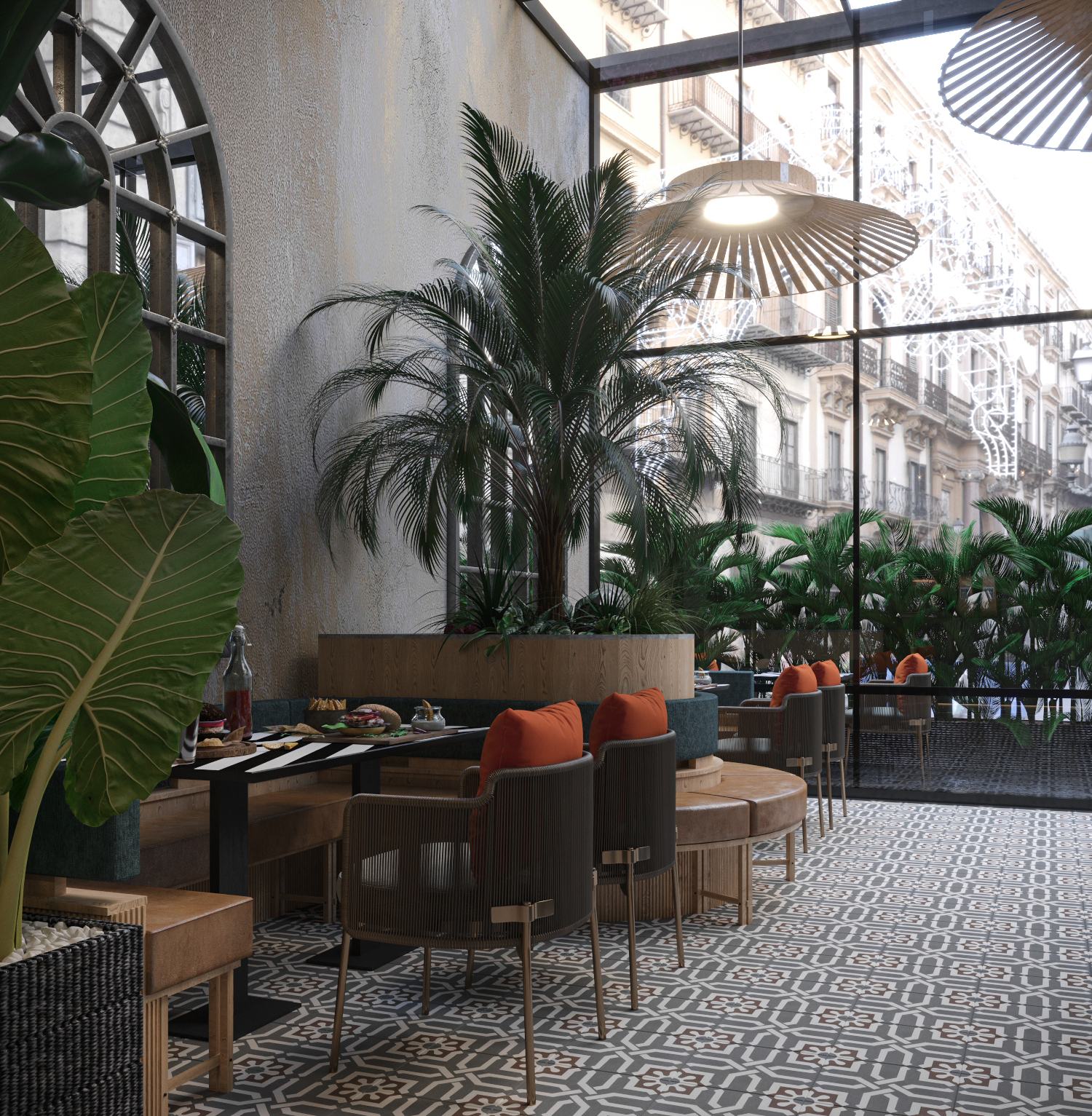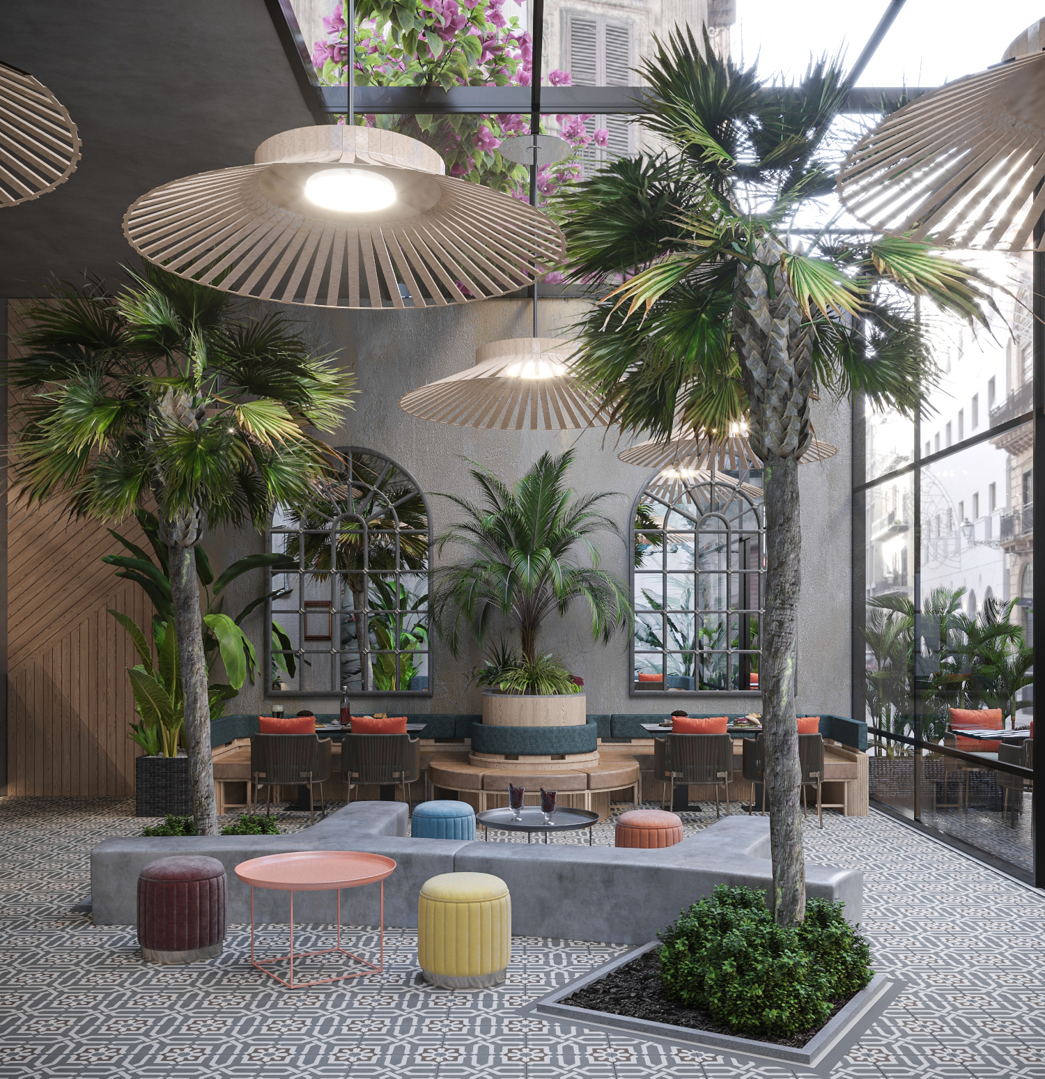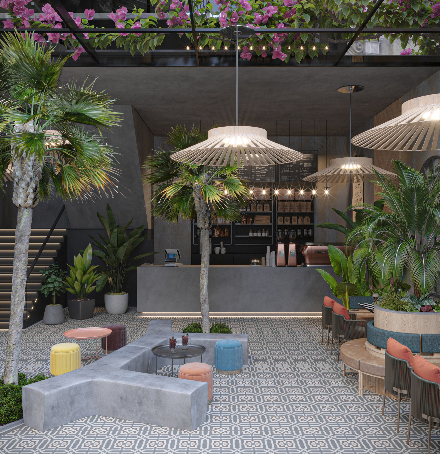 Restaurant design with a garden style embraces the beauty of nature and creates a serene and refreshing atmosphere. Lush greenery, vibrant flowers, and natural elements are seamlessly incorporated into the space, blurring the lines between indoors and outdoors. Wooden furniture, earthy tones, and soft lighting enhance the organic feel. Large windows and open spaces provide ample natural light and a sense of openness. Patrons can enjoy their meals surrounded by the tranquility of nature, with the gentle rustling of leaves and the occasional fragrance of blooming flowers. This garden-inspired restaurant design offers a delightful escape and a unique dining experience that reconnects guests with the beauty of the natural world.