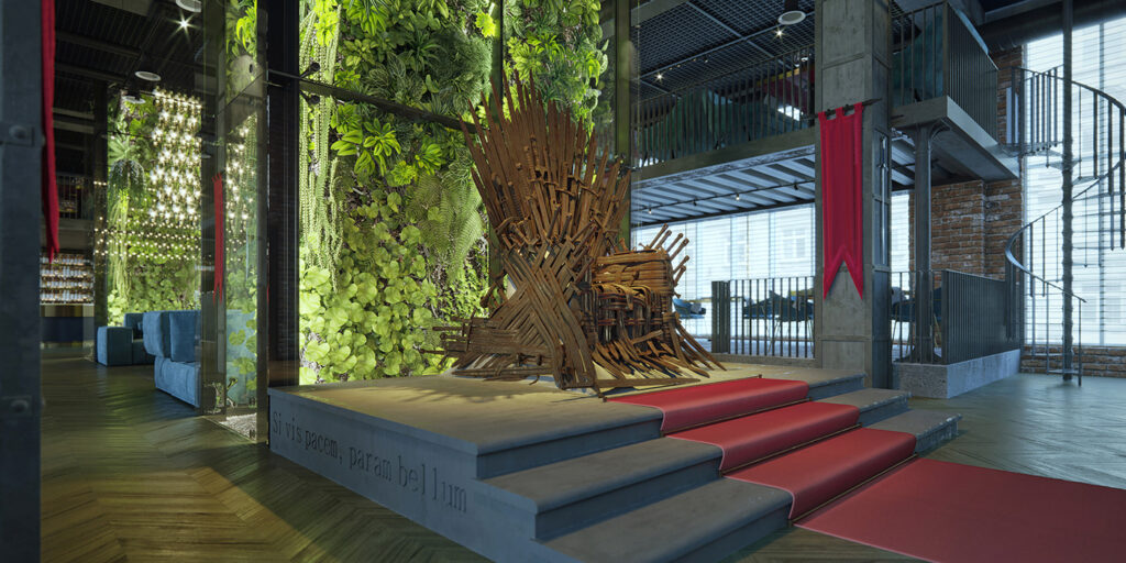 Restaurant design inspired by Game of Thrones transports guests to a world of medieval fantasy and intrigue. By transforming an old, unused building into this gathering point, it breathes new life into the space, giving it purpose and vitality. The Game of Thrones-inspired restaurant provides a unique and immersive experience, inviting patrons to immerse themselves in a world of fantasy while savoring delicious food and drink.